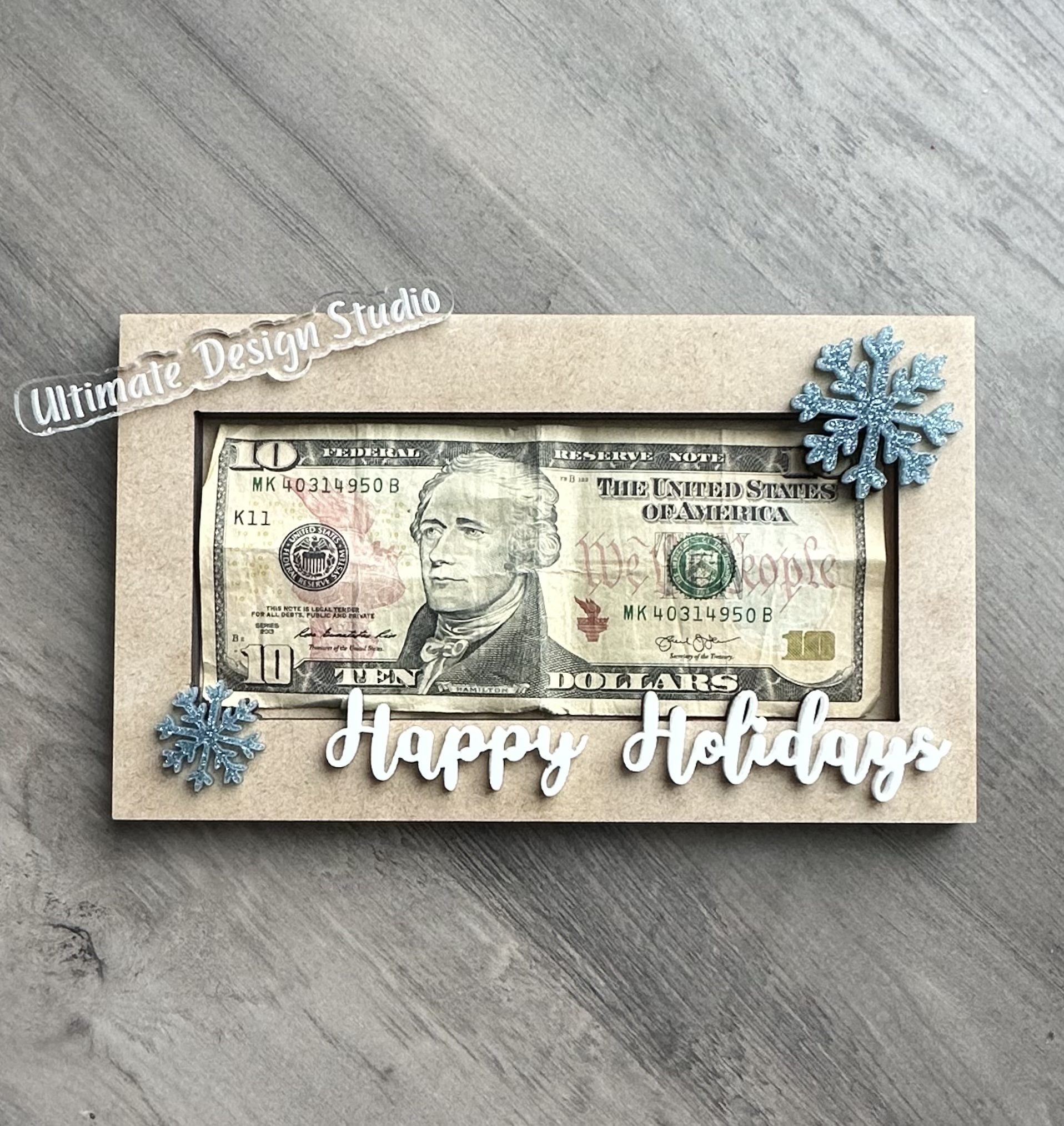Happy Holidays money holder measures 4.5" x 7.6" (Height x Width) and accommodates 7+ sheets of cash.