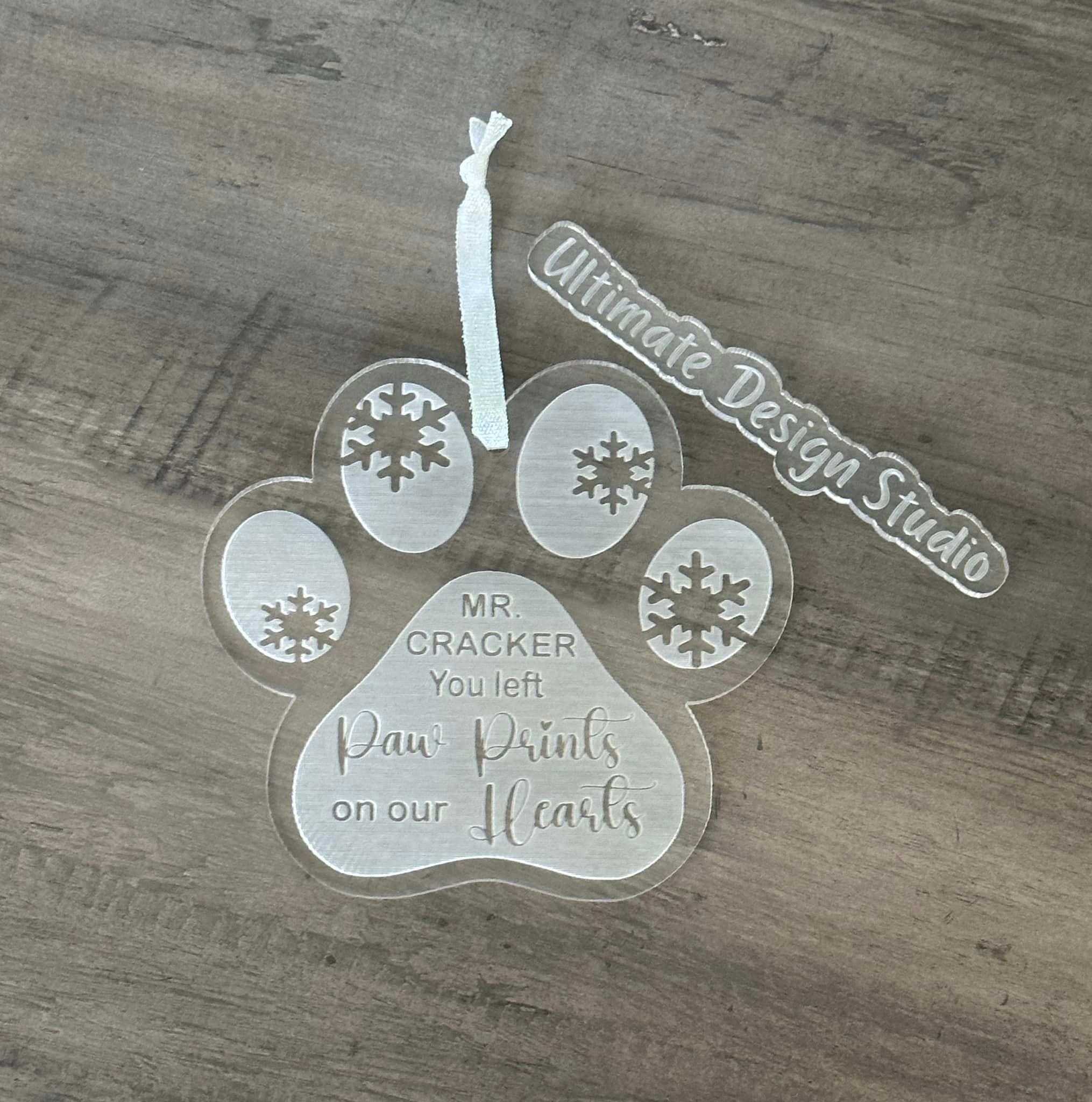 Ornament is engraved with the name of your pet.