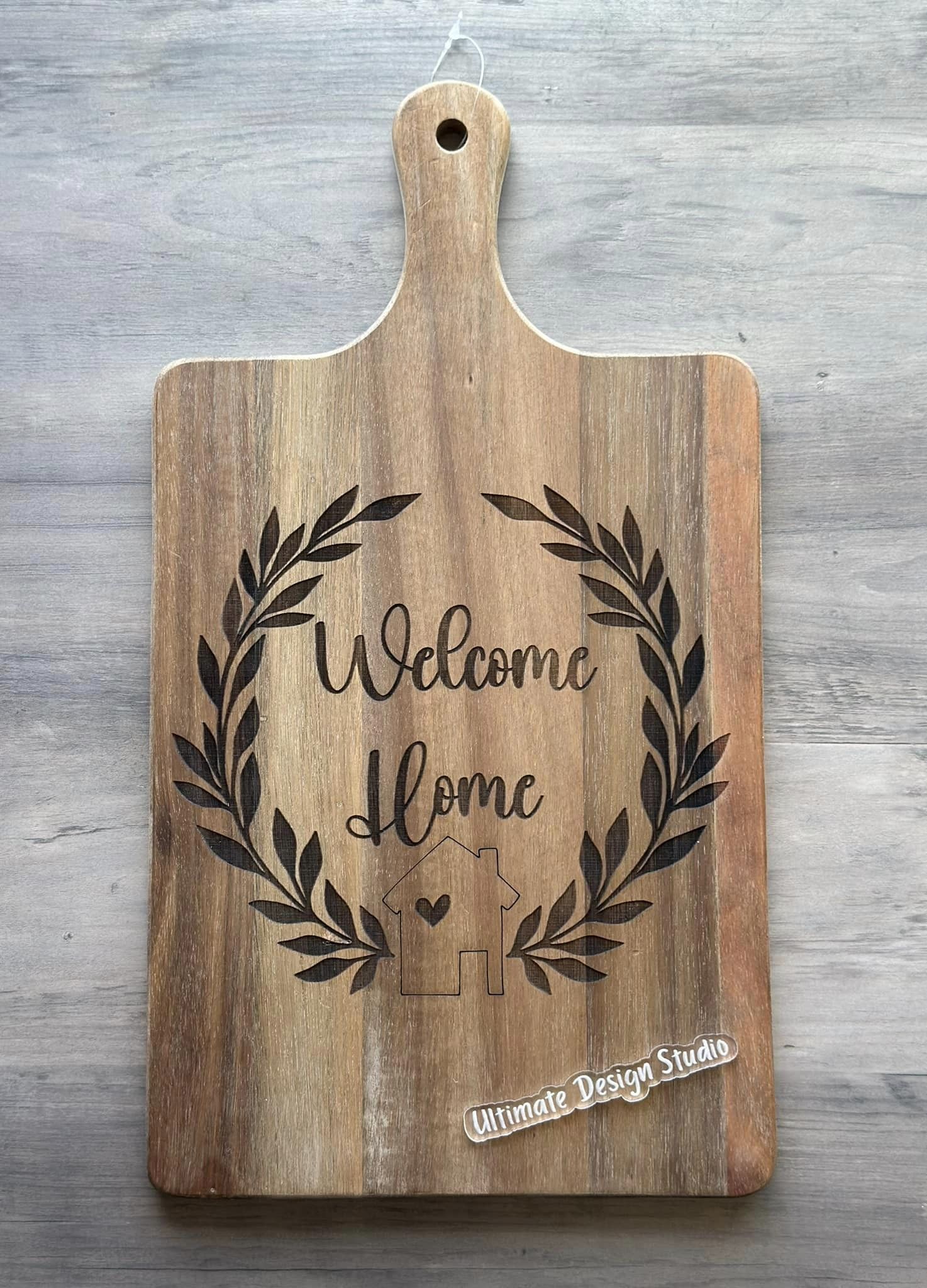 Welcome Home cutting board is the perfect gift for new homeowners!